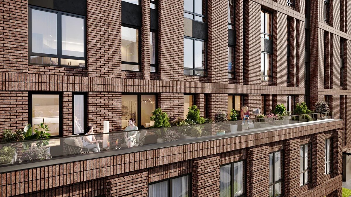 Это целая история. Комплекс строится на месте бывшей Петербургской макаронной фабрики — а значит, у него есть характер, культурный код и своя логика. Архитекторы вдохновились индустриальным прошлым и превратили его в благородную эстетику: геометричные фасады, сложная текстура материалов, натуральные цвета, детали со смыслом.